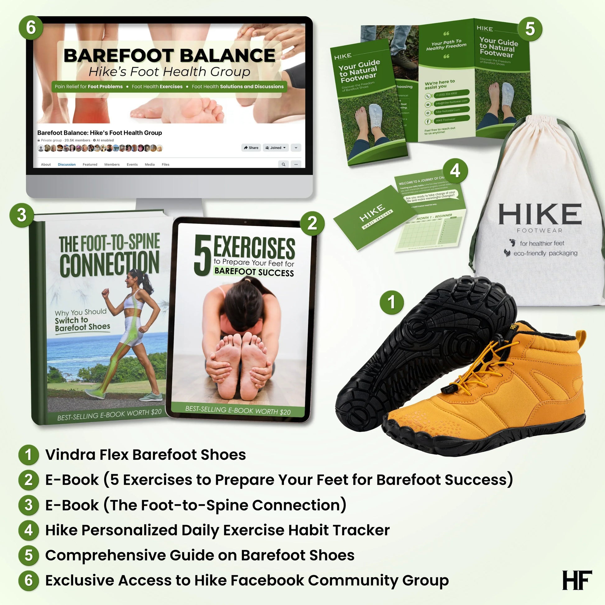 Vindra Flex: Experience true foot freedom in winter! Our waterproof barefoot shoes feature an extra-wide toe box, zero-drop sole, and ultra-flexible design, wrapped in incredibly soft materials. Combined with complete weather protection, these shoes are perfect for every outdoor activity, rain or shine.
